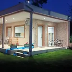 这栋别墅配有露台,阳台 和咖啡机/煮茶机,带电热水壶,咖啡壶/茶壶 和炉子的大厨房可供使用. 别墅面朝花园,浴室配有分开的洗手间 和淋浴.